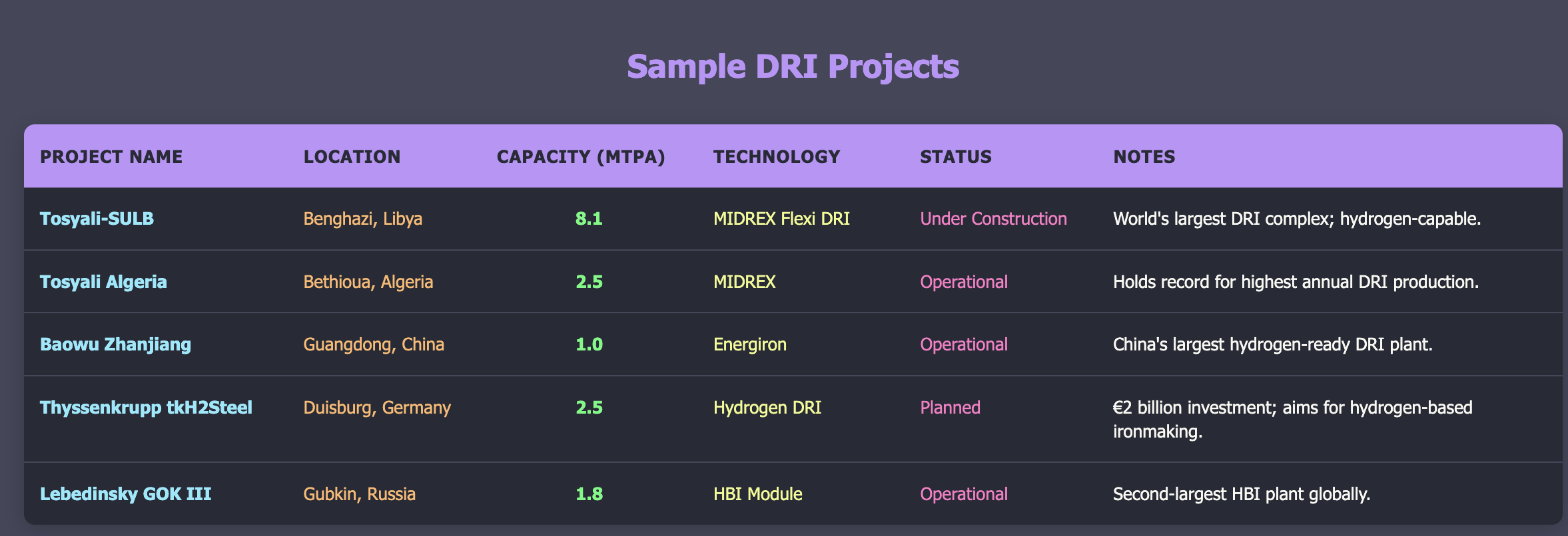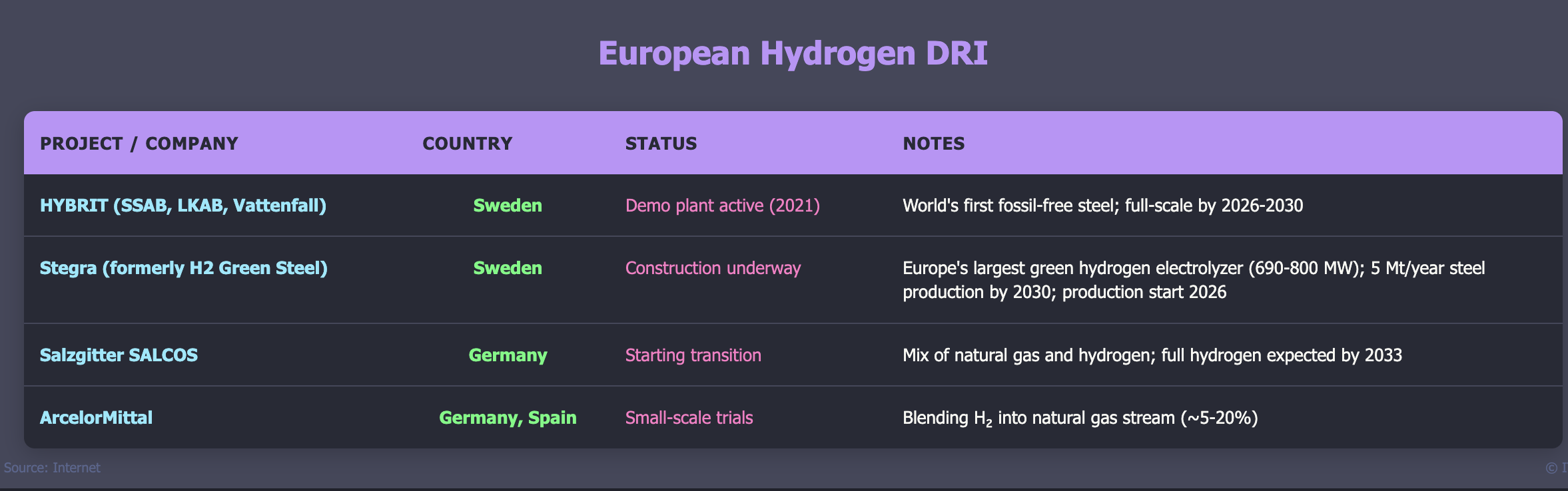 Below is a table highlighting some of the largest existing and planned DRI facilities worldwide: Hydrogen-Based Direct Reduced Iron: Current Status and Economics. This list is far from exhaustive.