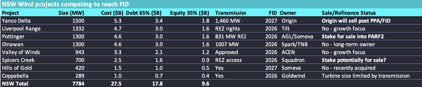 There is diversity of ownership but leaving aside Valley of the Winds and Dinawan most of the projects will be competing for Australian super fund money one way or another, or new sources of international equity.