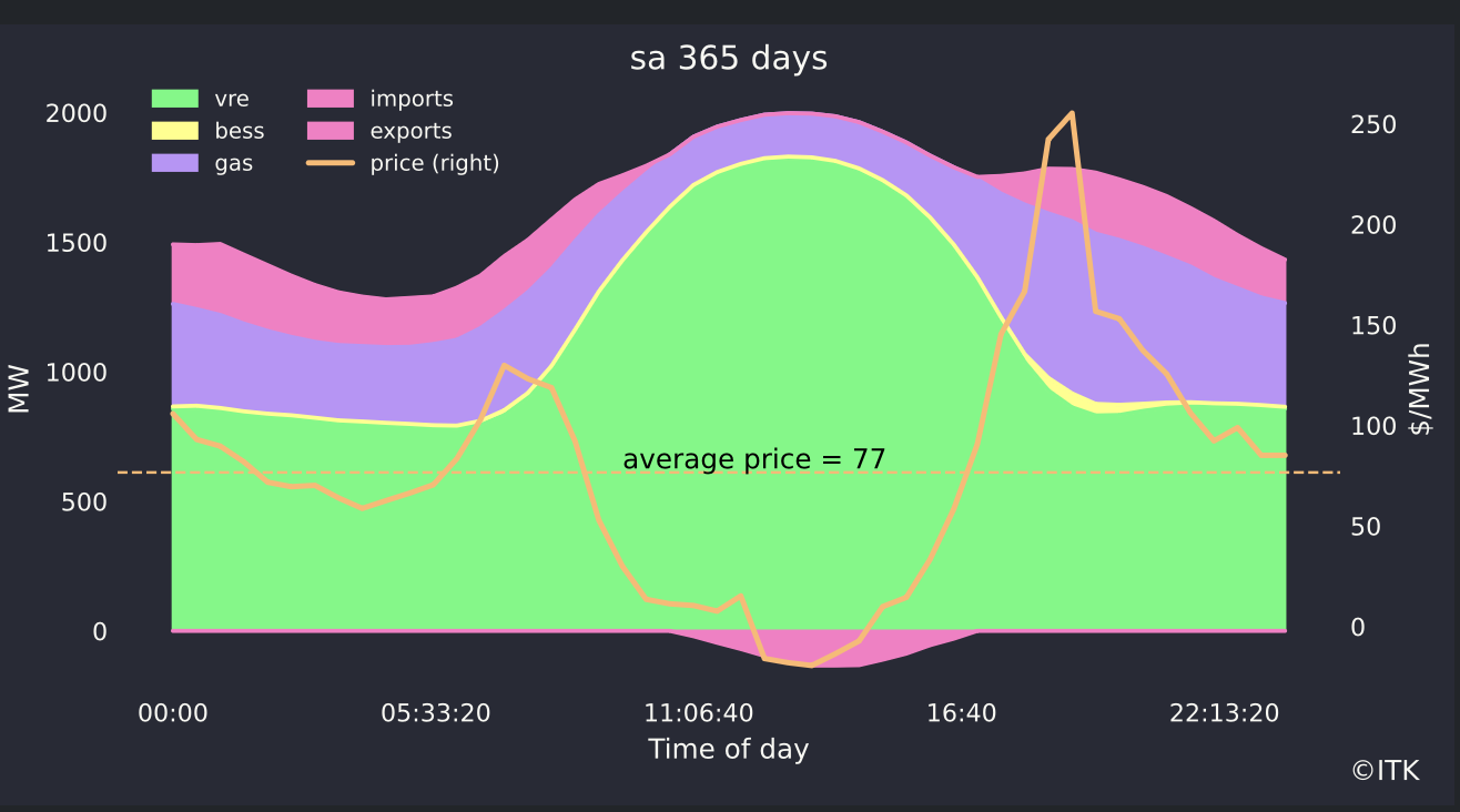 Then along comes variable renewable energy (VRE), except that really the solar is not all that variable. The impact of solar is obvious, it kills price in the middle of the day. The more so because coal has to keep running.