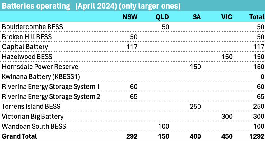 As shown in Figure 2 batteries have not so far competed with gas, at least not in States which are short on energy, and that means NSW and QLD. Equally though it could be that batteries are undercutting gas in South Australia and Victoria because that is where there are already more MW of battery installation.