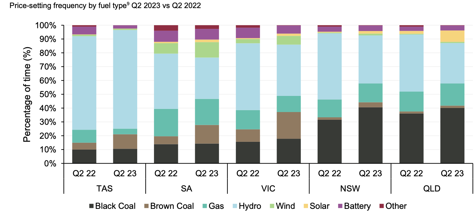 In Figure 7 its already clear that batteries have a role to play in setting price, most visibly in QLD, but hydro dominates. Hydro and gas both tend to bid above $150/MWh.