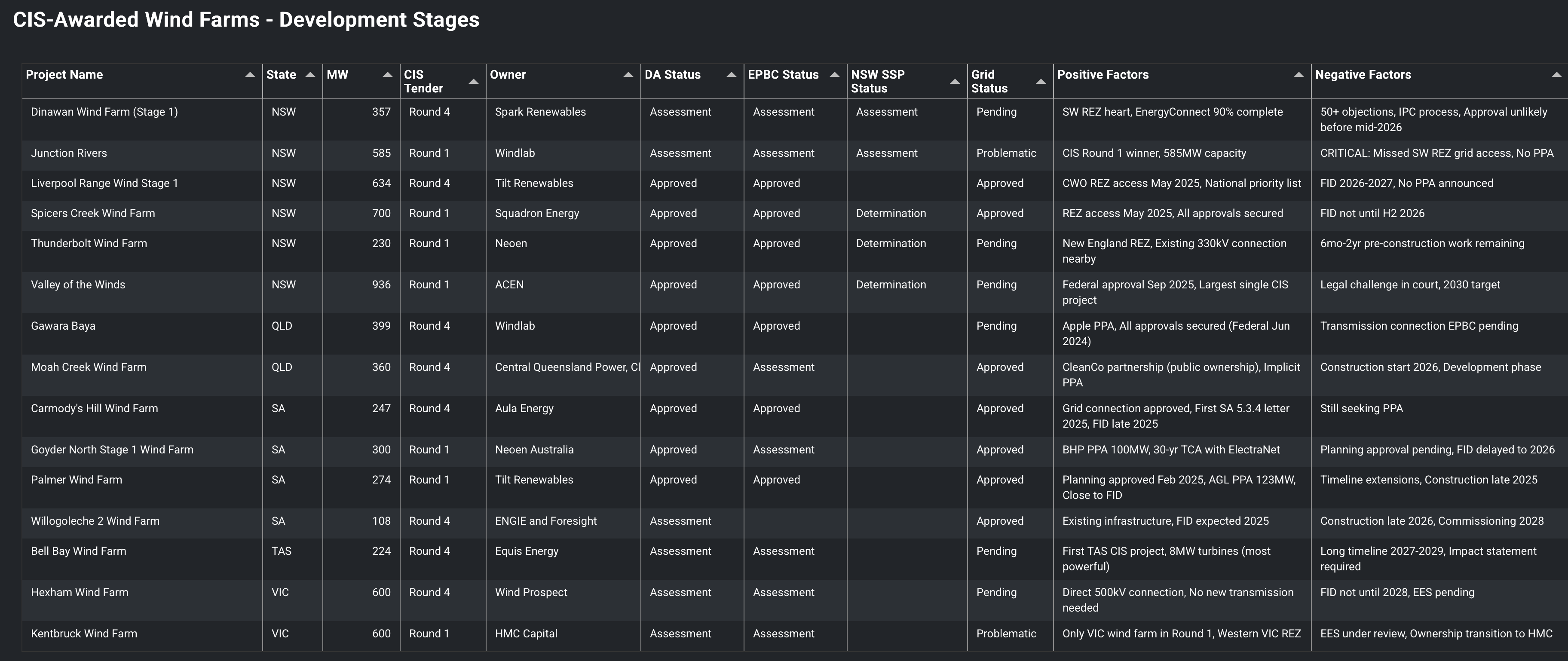 As I and anyone else interested in wind projects knows, they are slow to get going with only Palmer set fair. I did an updated desktop update of the 15 wind projects so far awarded a CIS, half of the capacity is in NSW, and vital for replacing the NSW coal stations.
