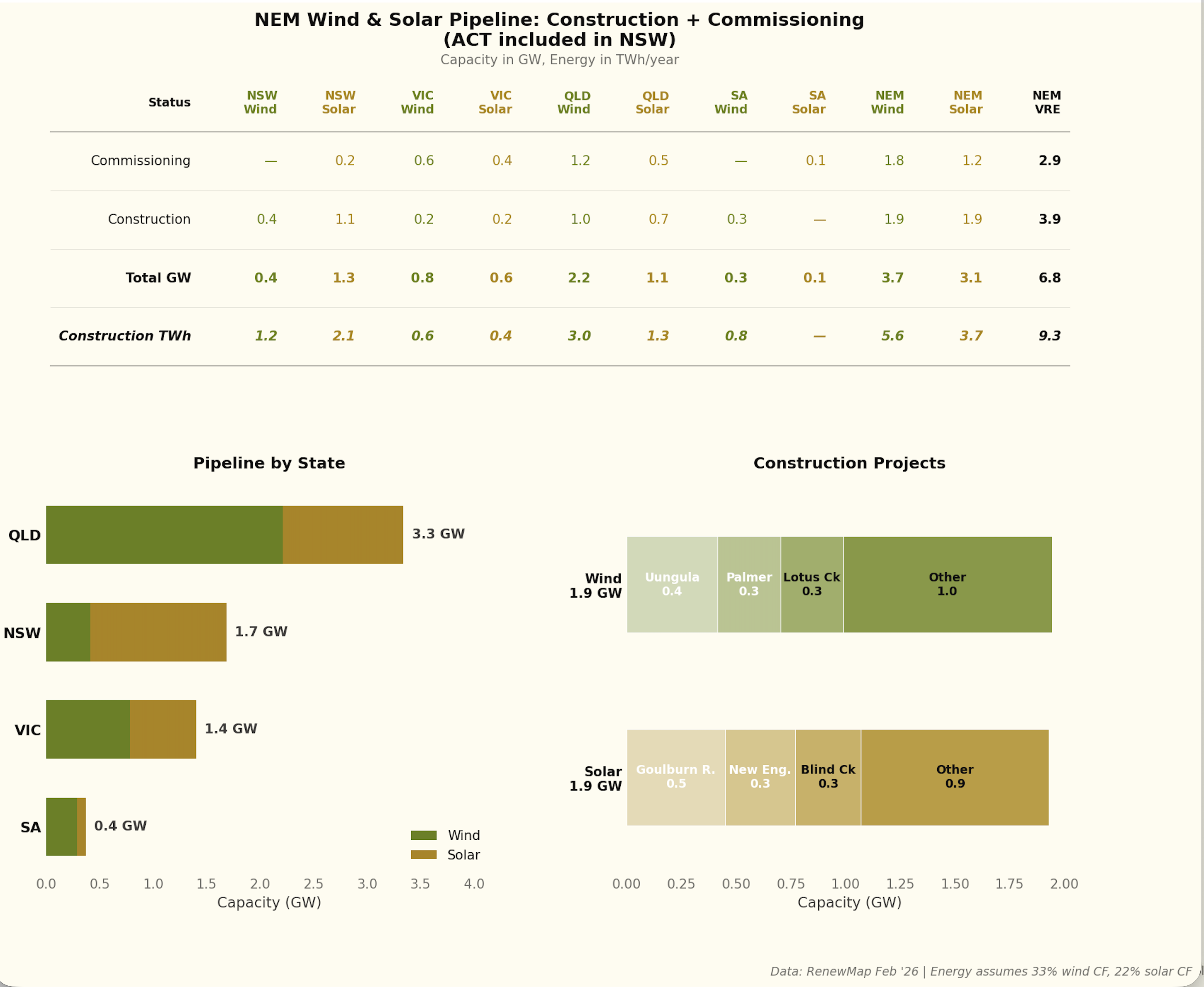 • Finally, as everyone knows, the pace of new wind and solar development remains abysmal. We are already in February 2026 and there is nothing obvious happening with new wind farms in NSW.