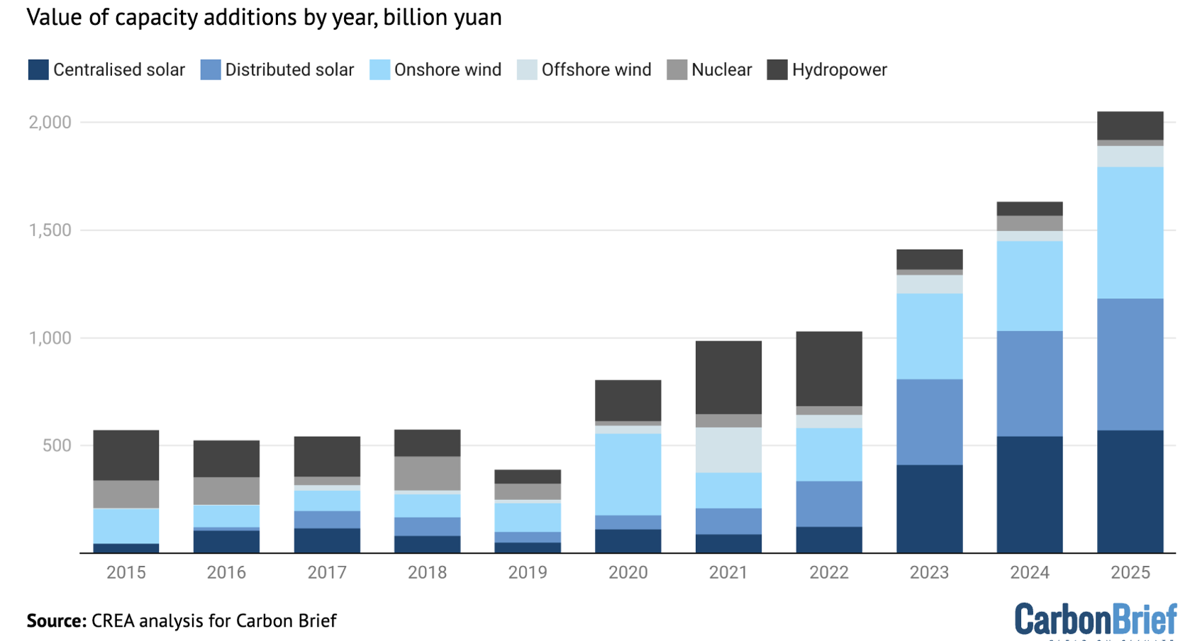 In 2025 China added 315 GW of solar and an astonishing 119 GW of wind. However, that was 2025. New pricing policies and the outcome of the 2025 plan, and by outcome I mean not just the notional targets but what the Government actively strives for, may mean some pullback, but maybe not.