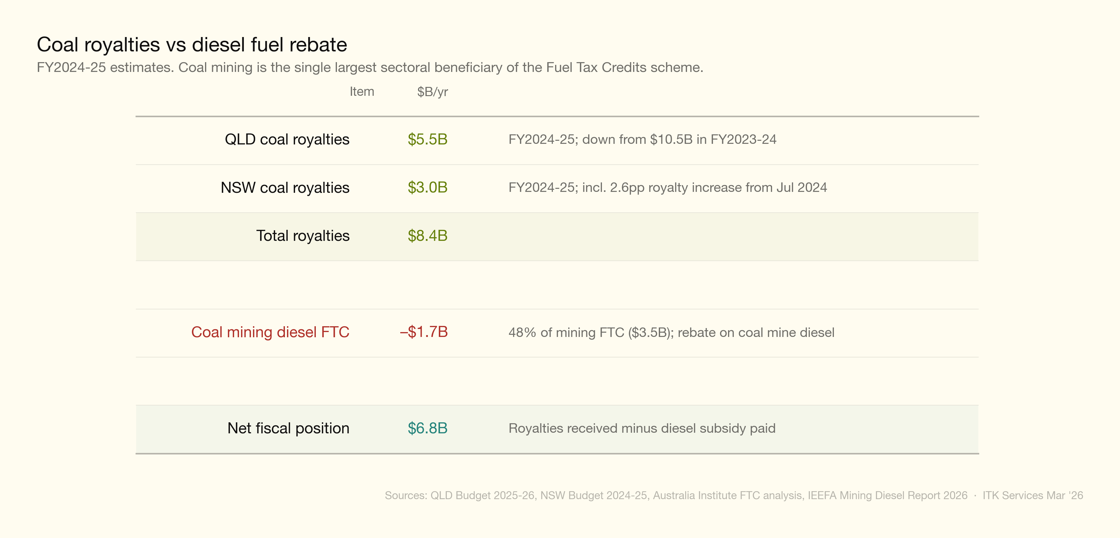 And a big part of the reason for Australia to “impoverish” itself is the diesel fuel rebate. The coal industry is Australia’s biggest beneficiary of the diesel fuel rebate.