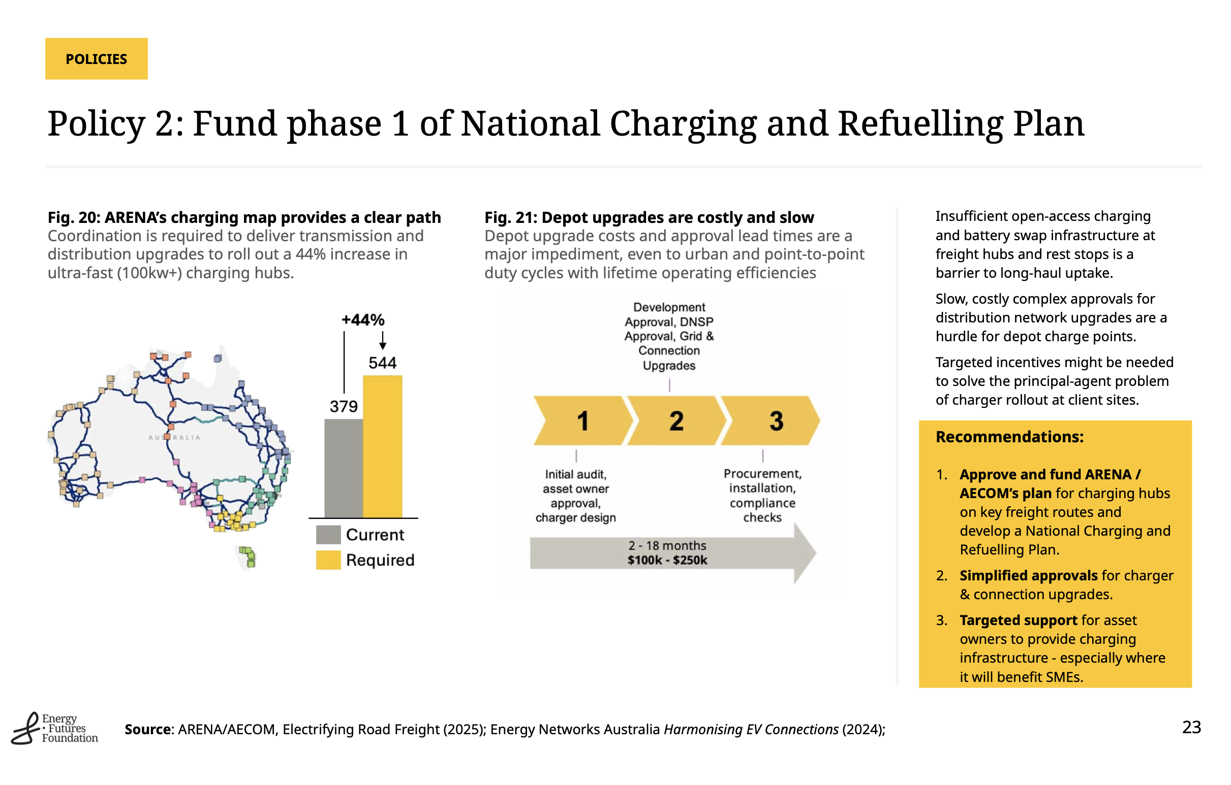 There are dots on maps representing charging hubs that someone might build sometime. Energy Futures’ Bruce Hardy presented at Freight Forwarders and showed a map similar to the one below on 7:30 report but none of it exists today.