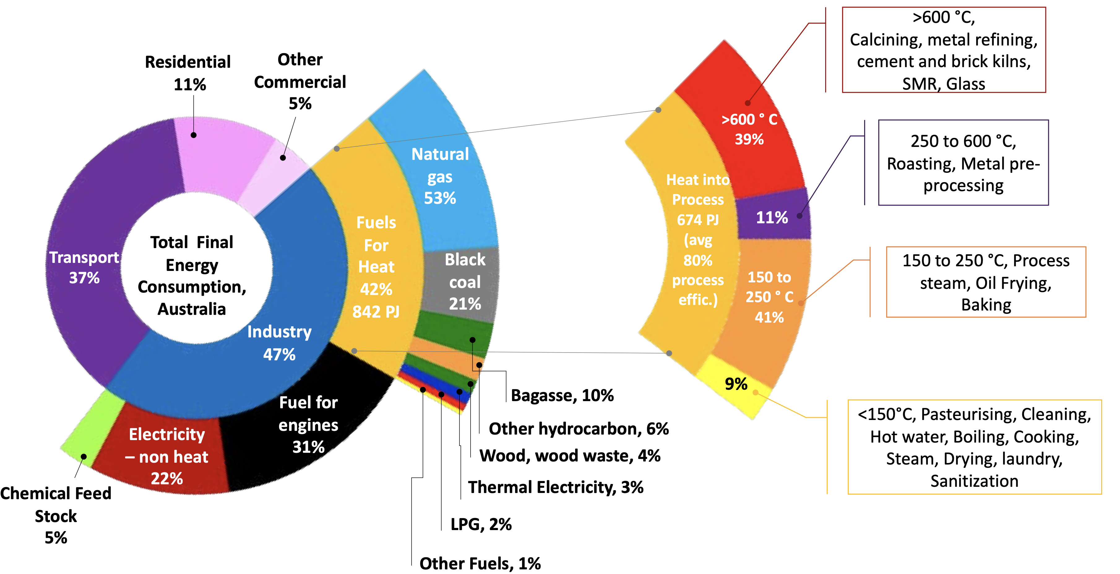 Figure 9: Process heat gas use and final consumption. Source: ITP Renewables, Lovegrove et Alia