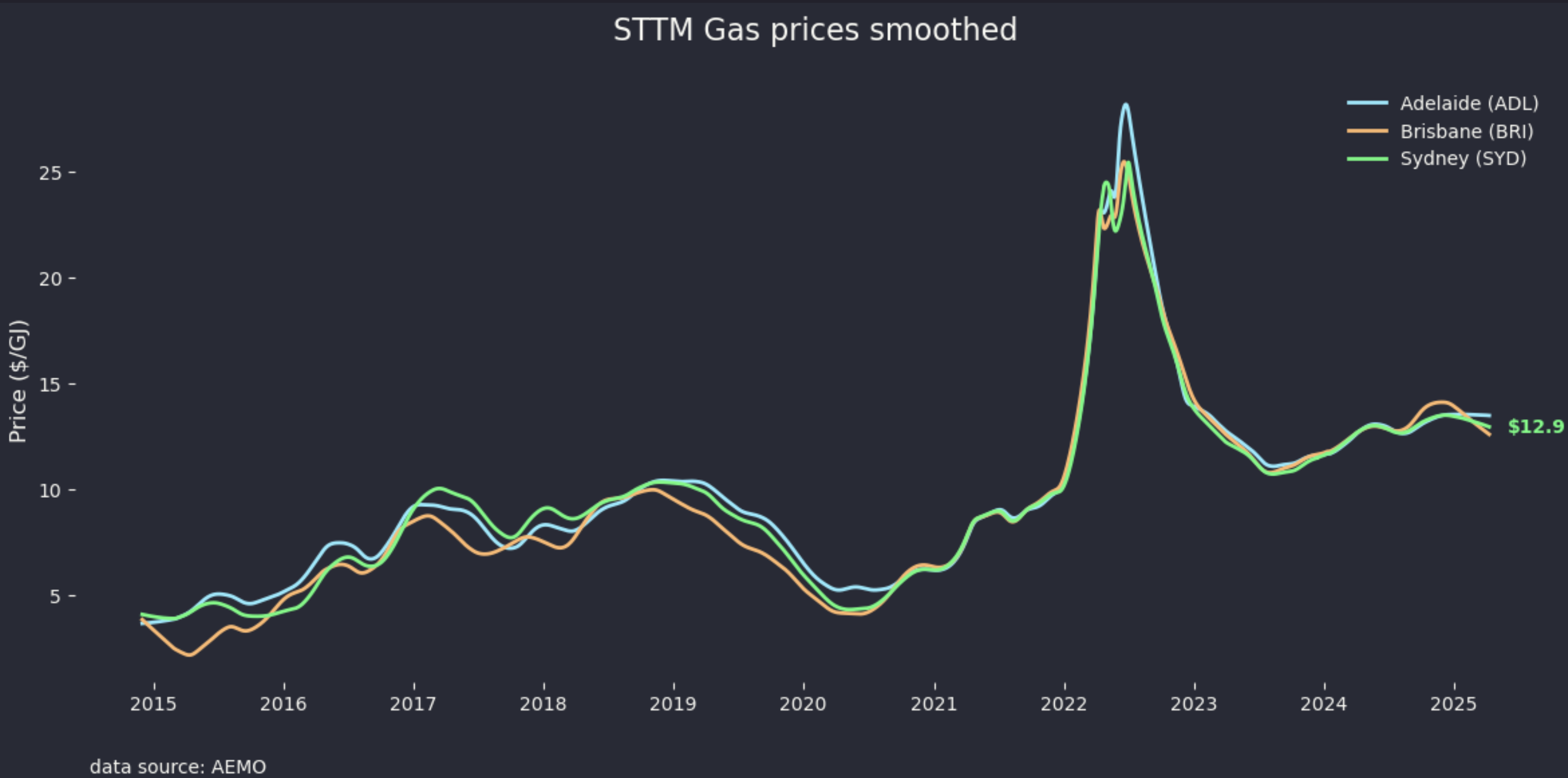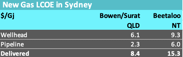 Domestic gas from new developments in Australia can be sub $10/Gj if its sourced from essentially brown field production in the Surat but a lot more from the Beetaloo should that ever be developed.