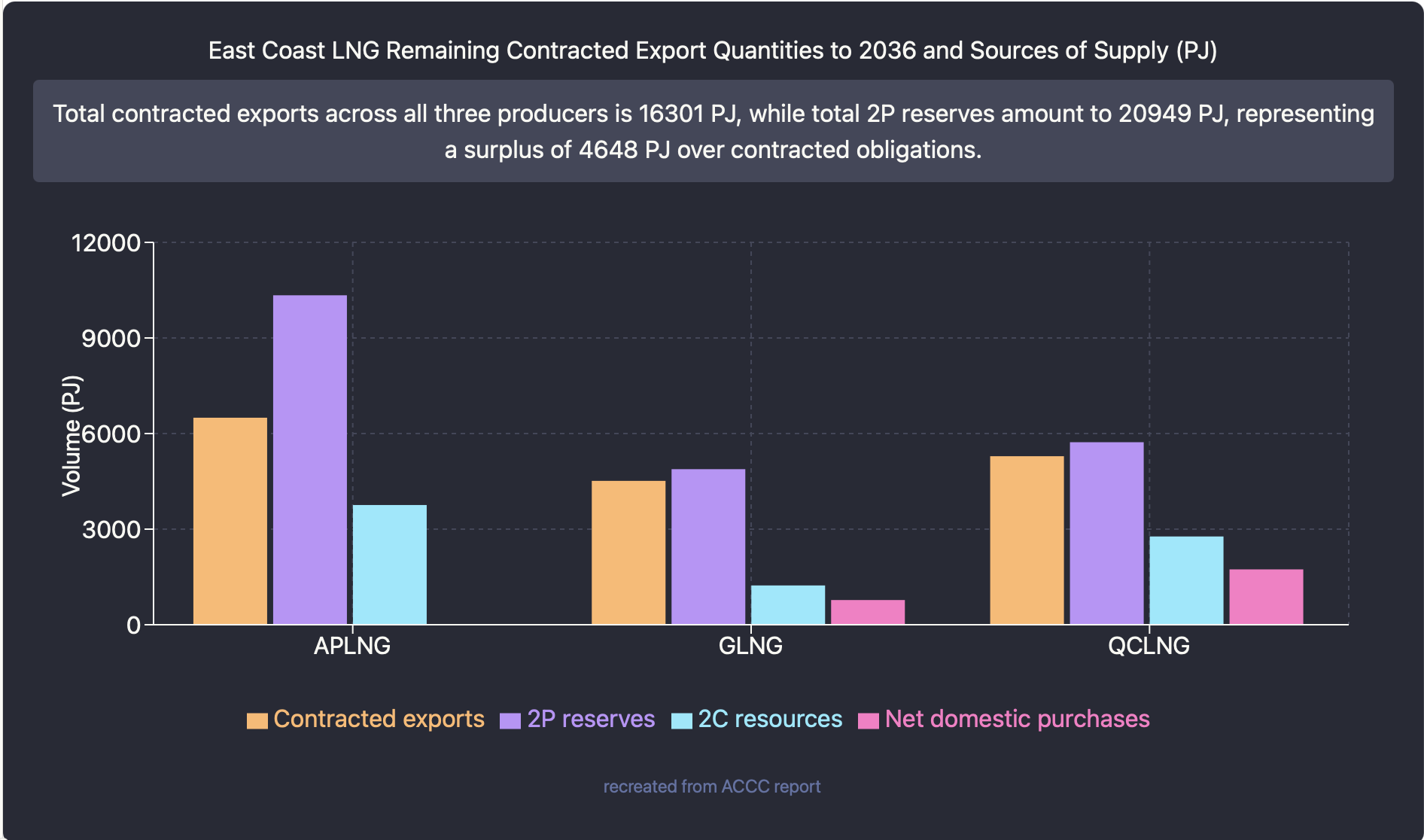 Figure 7: LNG producers remaining reserves. Source:ACCC