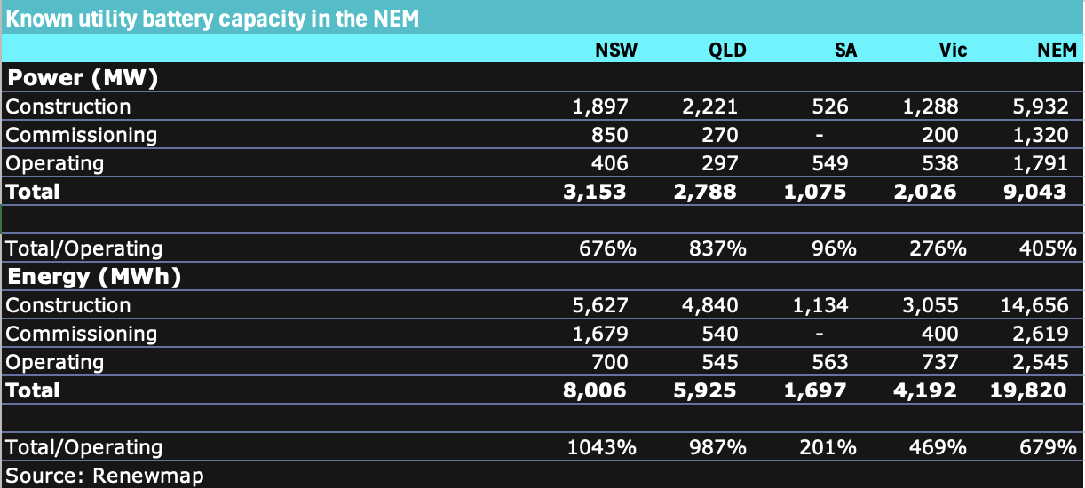 However that’s going to change as the current BESS buildout starts to come to fruition. Using Renewmap’s data battery power is going to grow about 4X and battery energy about 6.5X.