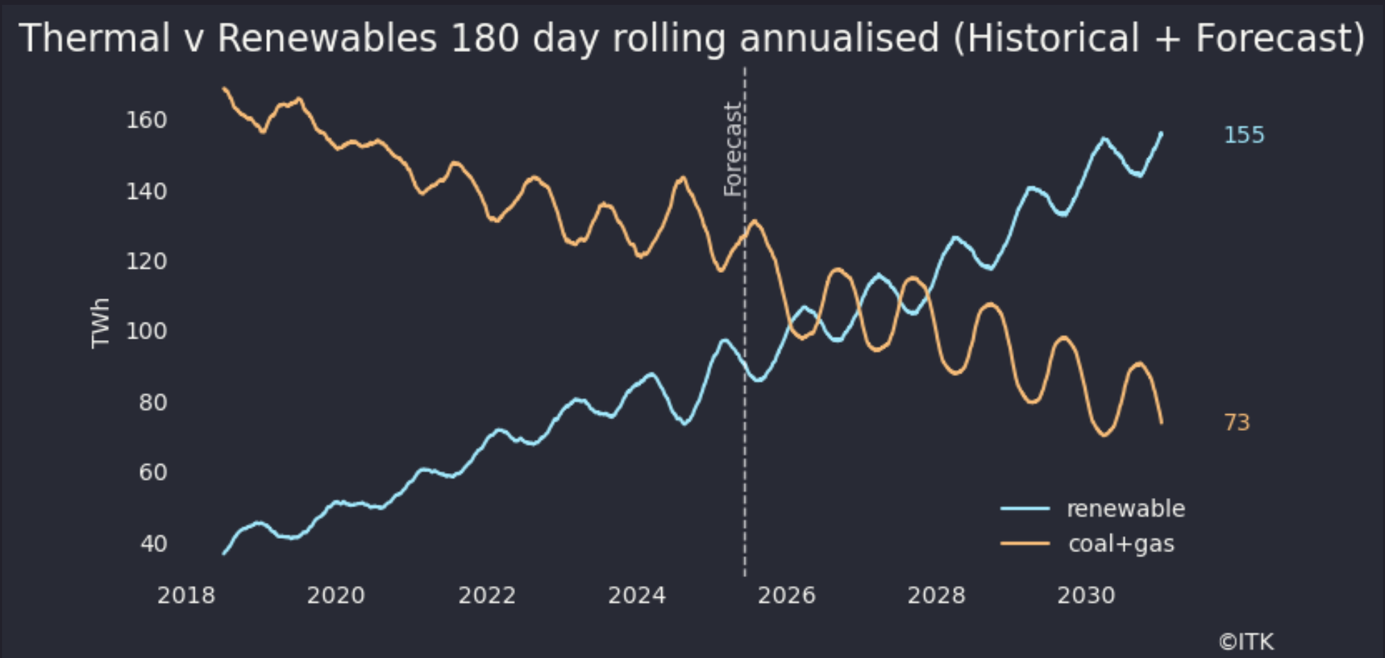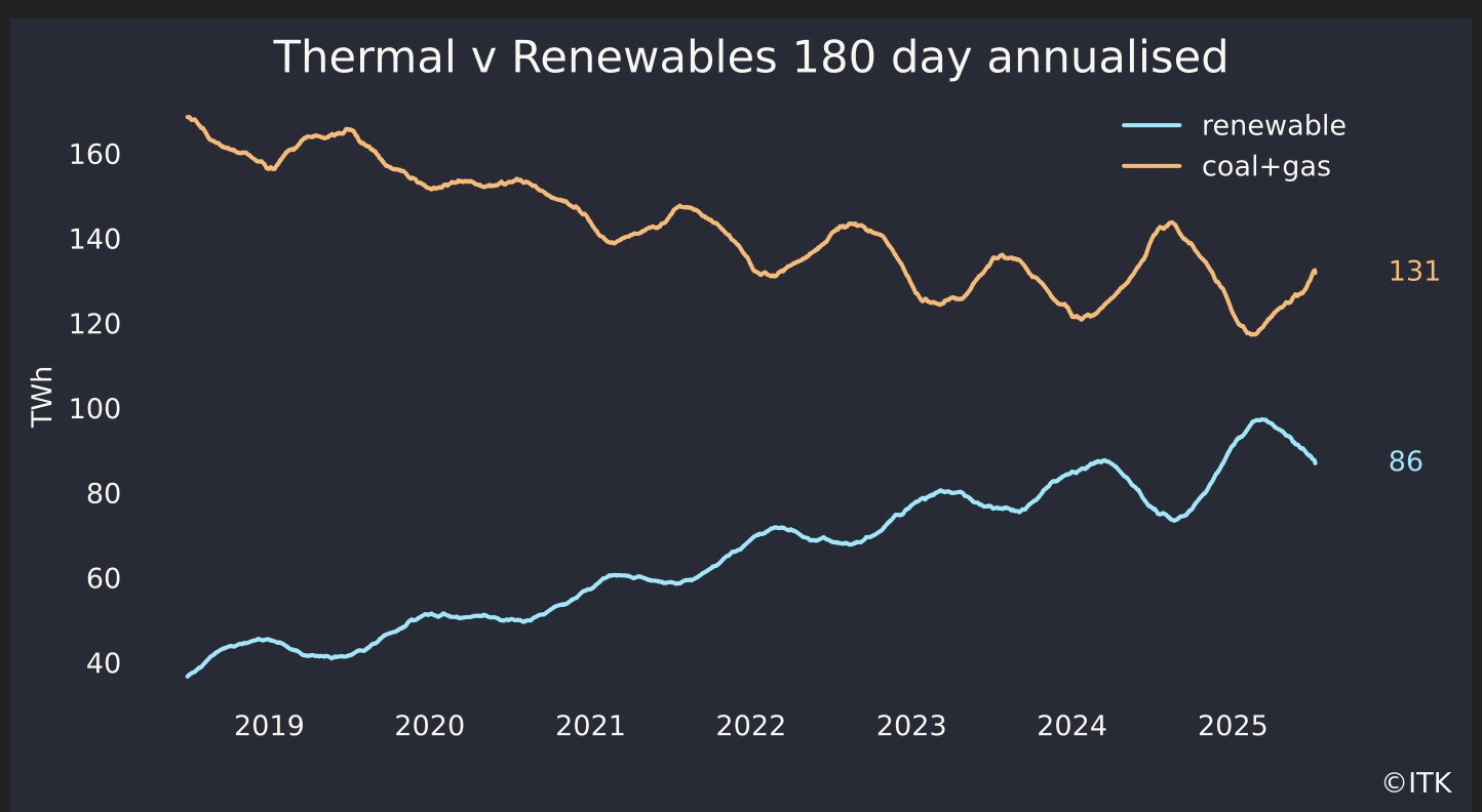 The biggest policy driver between now and 2030 is the Federal Govt’s CIS. Although there are separate tenders for dispatchible power, which in practice mostly means batteries, and energy I focus very heavily on the energy component. That calls for 23 GW of new wind and solar to be operational by 2030.