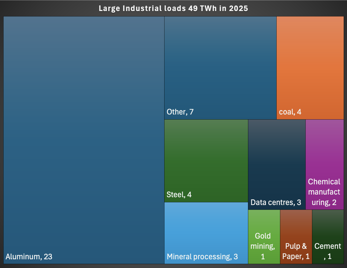 Large industrial loads - aluminium is maybe 40% with the rest spread around