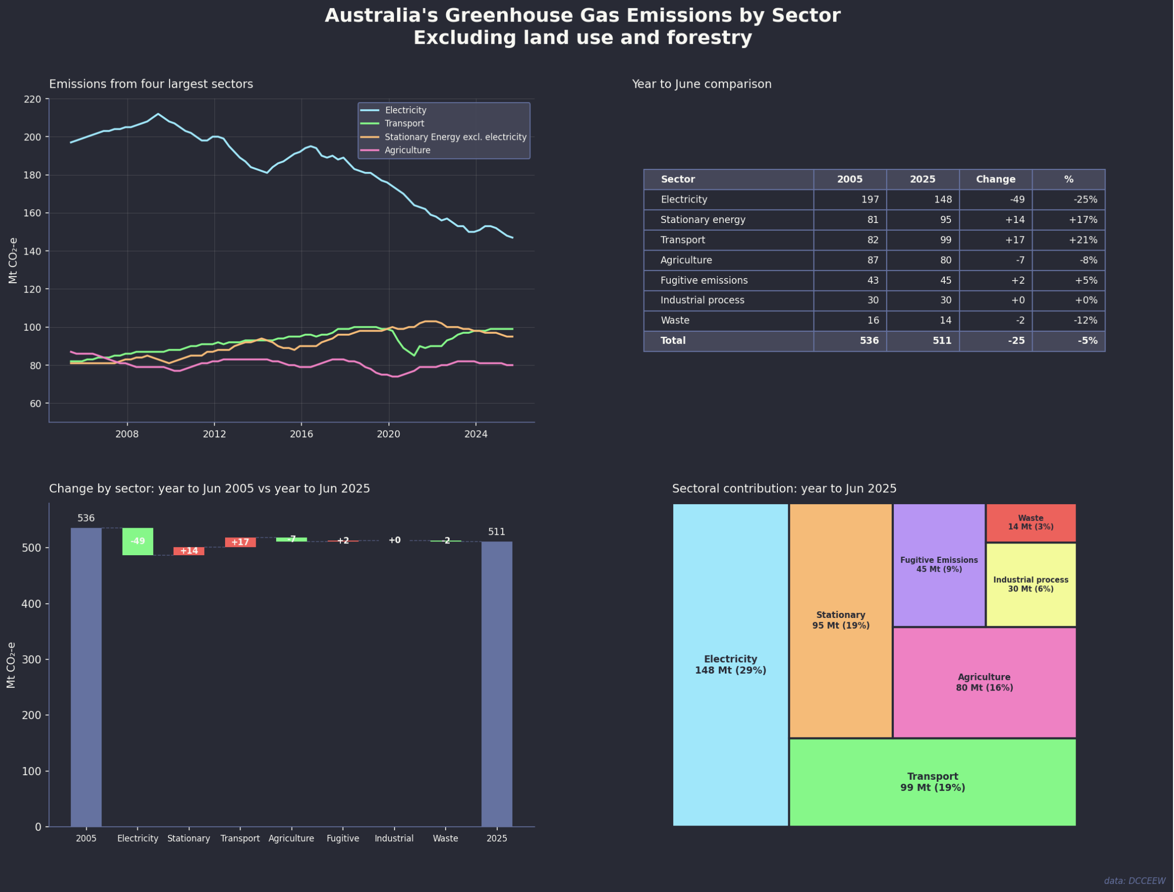 Equally I have excluded land use and forestry from the Australian scorecard because I think they are used to make it seem that Australia is making more progress than it actually is.