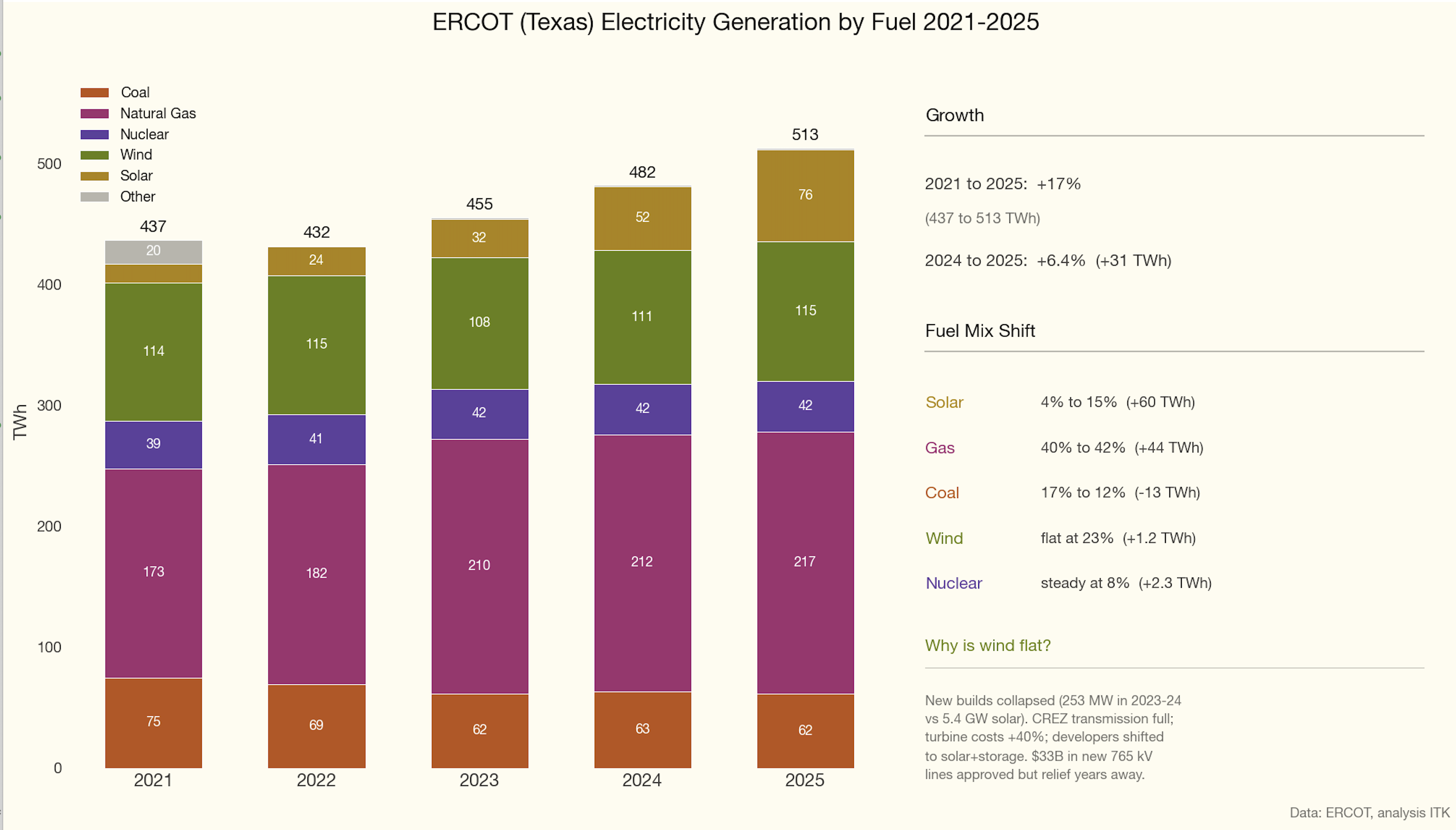 I don’t know whether to think it’s comforting or worrying that Texas faces the same wind challenges as Australia, that is, cost increases and existing transmission is fully built out, though more capacity will arrive in a few years. I do know it’s unsurprising. Texas is also a huge battery market, although proportionally it may be smaller than the NEM. Doesn’t matter, the trends are similar.