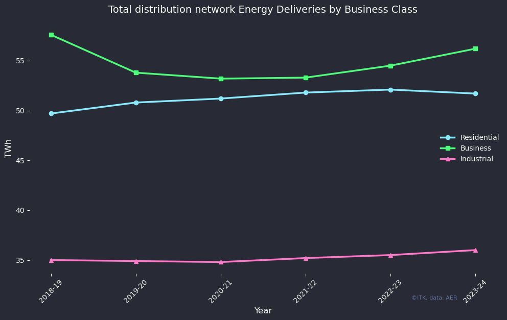 On the other hand the growth of business volumes, which as a very, very broad statement have less opportunity to add solar, is the hope of networks. Business volumes, that is non residential, low voltage connections whether on a demand tariff or not, grow with population and the economic cycle. On balance they are likely to keep growing. The same with industrial volumes.