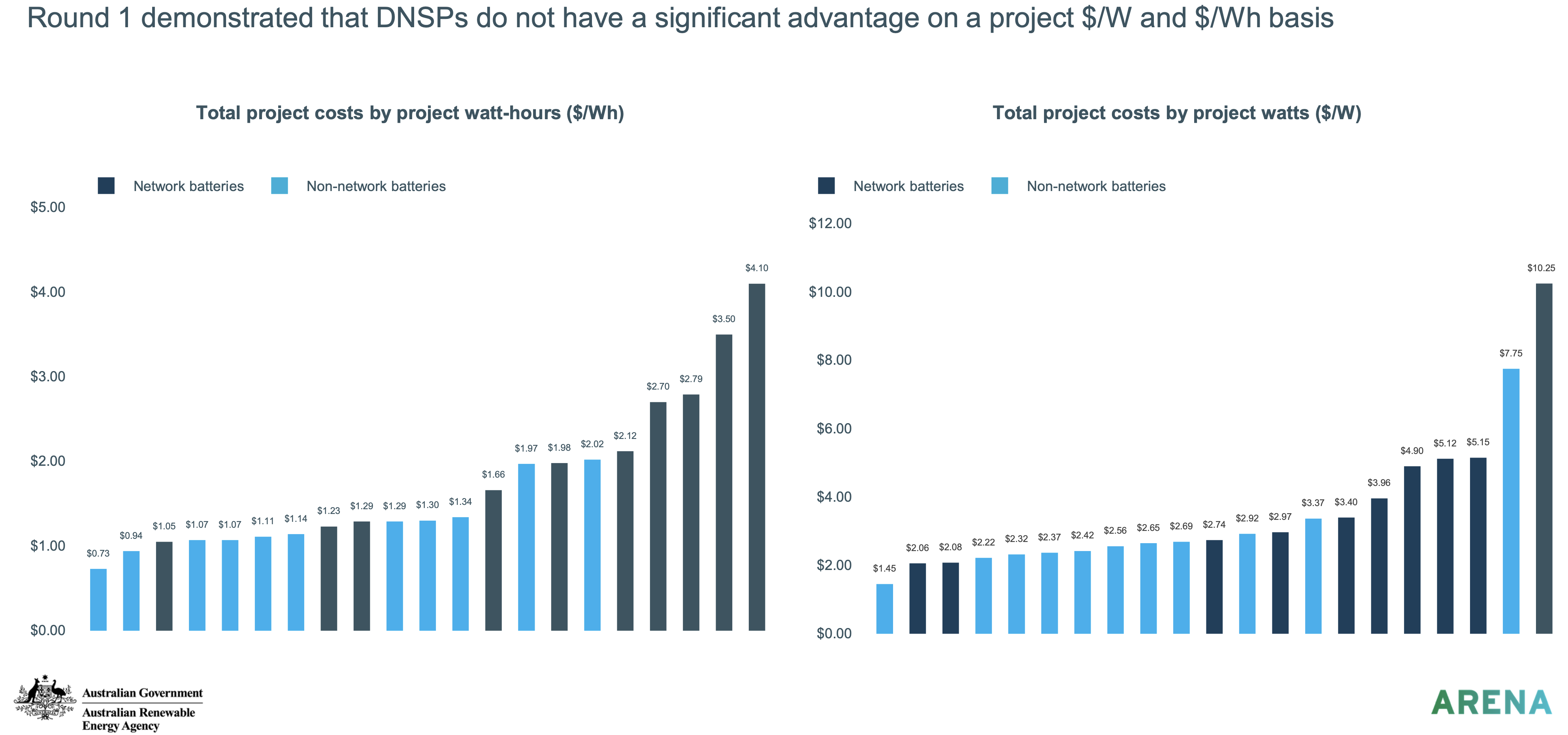 The best information on network battery costs comes from the ARENA funding. Although this slide doesn’t say it all and I’m not sure I agree with the conclusion. I didn’t write it and the headline in big letters is fairly clear.